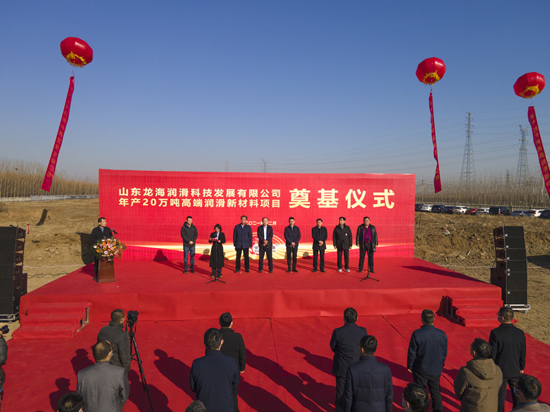 山東龍海潤滑科技發(fā)展有限公司年產(chǎn)20萬噸高端潤滑新材料項目12月19日上午隆重開工,區(qū)領(lǐng)導(dǎo)孫鋒、王孝東,區(qū)有關(guān)部門、萌水鎮(zhèn)、部分骨干企業(yè)主要負責(zé)人,及中科院蘭化所等單位來賓出席開工儀式。